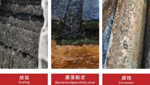 1. 产品质量下降:许多化学反应和物理过程对温度极其敏感。例如,在聚合反应中,温度控制偏差一度就可能导致分子量分布不均,产品等级降低甚至成为废品。冷凝器结垢导致冷凝效果变差,会造成精馏塔顶回流液温度升高,破坏塔内气液平衡,最终导致产品纯度不达标。 2. 生产能力下降:为了保护设备或因换热不足,系统往往无法在设计的满负荷下运行。例如,一台结垢的裂解气压缩机段间冷却器,无法将工艺气体冷却到预定温度,会直接限制下一阶段的处理量,迫使整个装置降负荷生产,影响产量。 3. 工艺稳定性与安全风险:换热效率不足可能导致工艺介质温度失控。高温可能引发副反应、催化剂烧结失效,甚至引发物料分解、超压等安全事故。在极端情况下,因冷却失效而引发的安全事故在国内外时有发生。 四、结垢对管路系统及附属设备的影响结垢不仅发生在换热器内,整个循环水系统都会受到影响。 1. 管路阻力增加,泵送能耗激增:垢层会使管道内径变小,内壁粗糙度增加,显著增大水流阻力。为了维持系统所需的流量和压力,循环水泵必须提供更高的扬程,导致电耗大幅增加,运行成本上升。